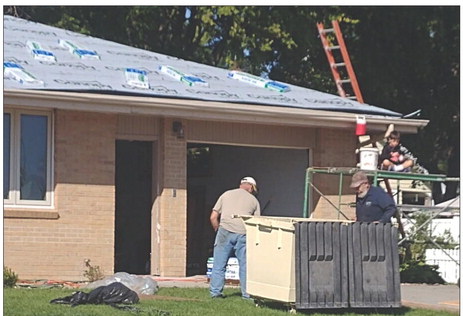Volunteers at Trinity Lutheran Church spent much of Sunday putting a new roof on the parsonage. They spent the late morning tearing off the old roof and the rest of the day putting on new shingles.