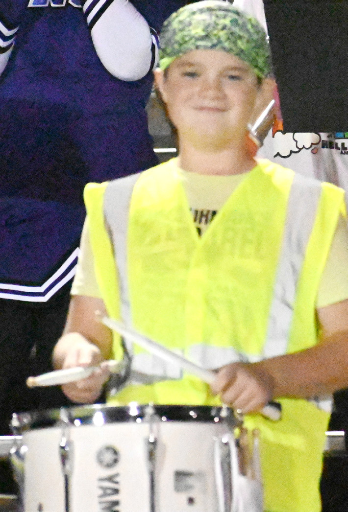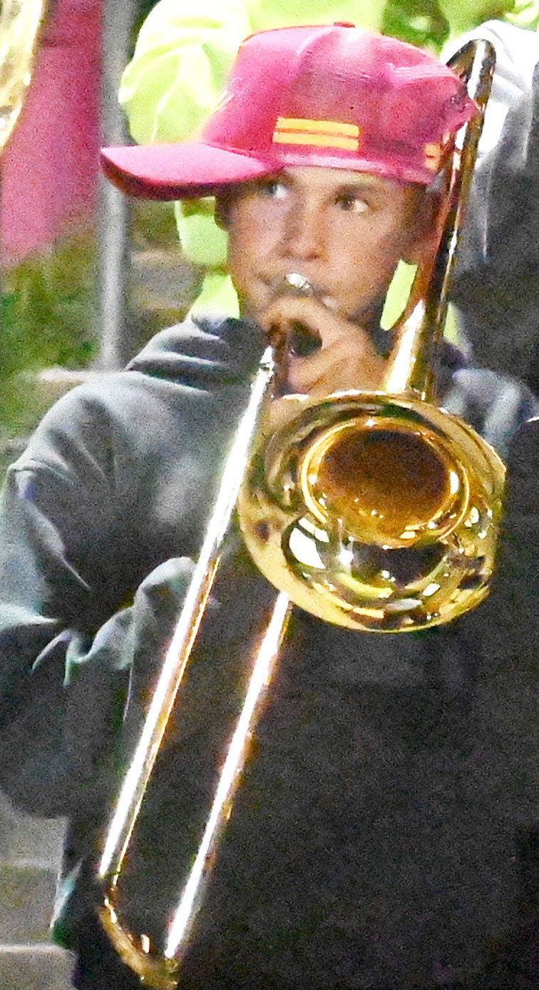 The Hartington-Newcastle High School band was in fine form Thursday night as they performed at the Hartington Community Complex for the Wildcats final regular season game of the year. Emma and Ella Hoeppner (above) led the horn section. Caleb Heimes (top, left) performed with this classmates, while Max Climer (left) made sure to keep the beat. Kellyn Dump | Cedar County News
