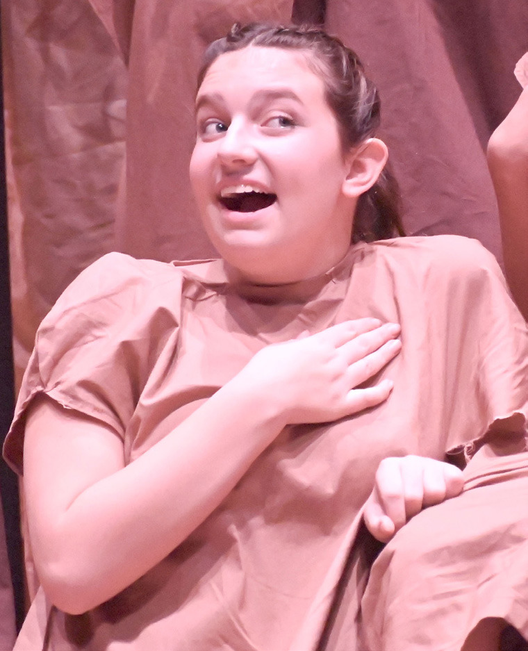 Other cast members include: QUEEN/ESTELLE – Vayda Lippert OCTAVIUM/WALLY – Carter Kelly CONSPIRATOR #1/ROY – Jason Heimes CONSPIRATOR #2/CLARENCE – Gabe Reyes HOMERICUS – Scout Heimes JACK – Trevon Hopping SHEL – Austin Sudbeck COCHETTE – Trynity Zach COCHETTE’S ASSISTANT – Kaylee Kloster SHIELD MAIDEN COMMANDER/ROSE – Emily Climer CARL – Dylan Heikes