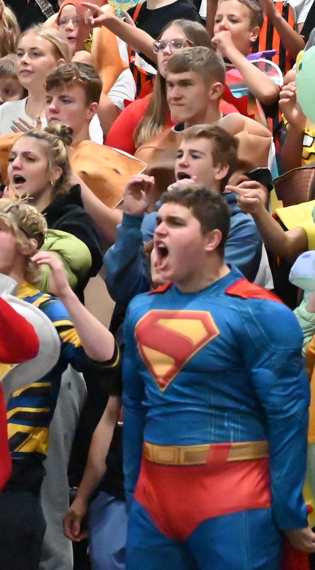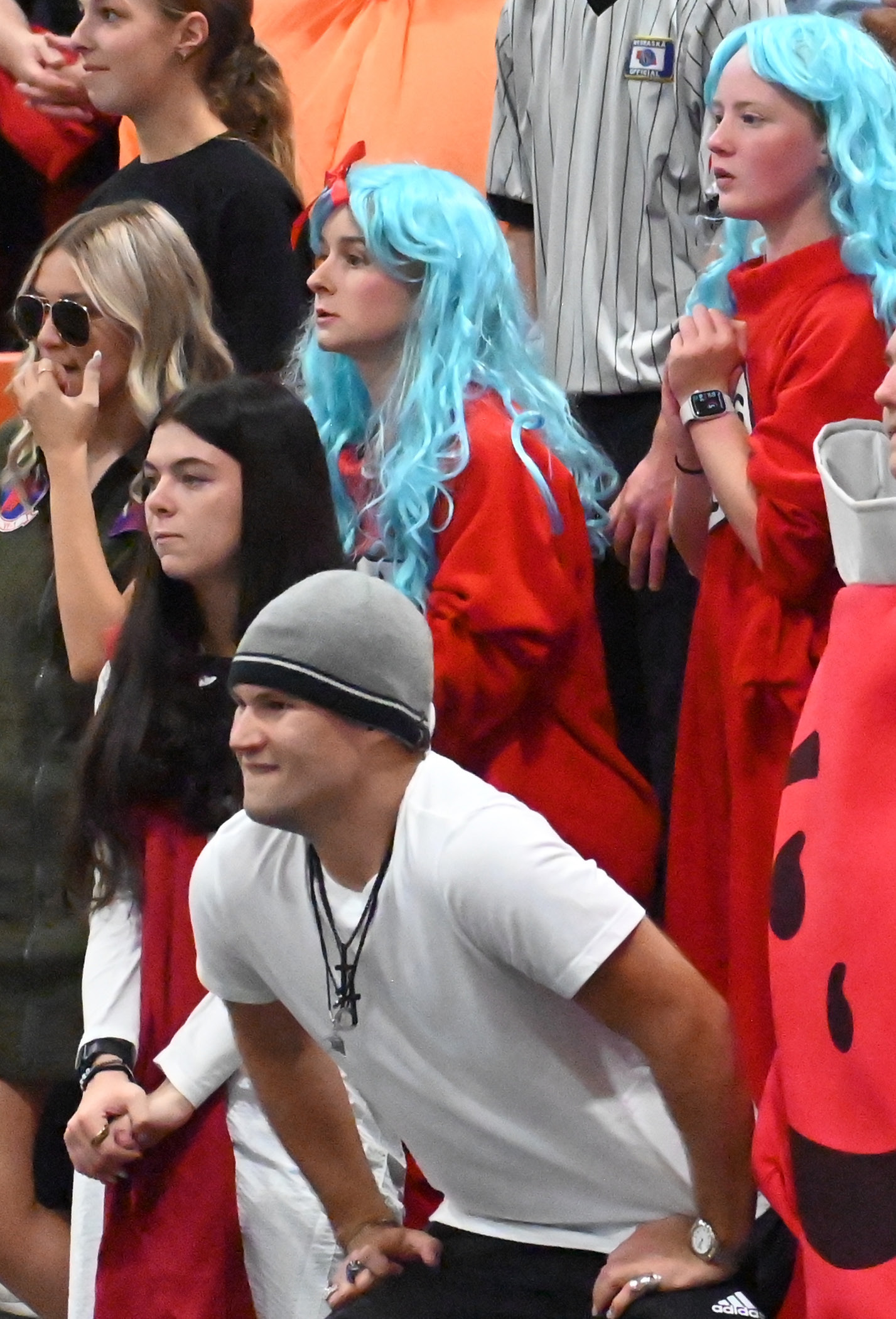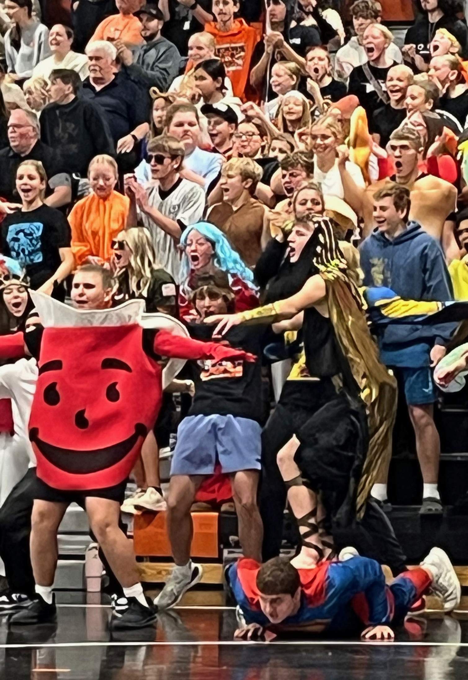 Fans donned their Halloween costumes to help liven up the student section, as the Laurel- Concord-Coleridge fans packed the gym Saturday afternoon to help cheer on the LCC Lady Bear volleyball team in the District championship game against Stanton. Their efforts seemed to help as the Orange and Black out-lasted a stubborn Stanton team to win the match in five sets and advance to this week’s Class C2 State Tournament in Lincoln. The Lady Bears will take on Norfolk Catholic Thursday night in their State Tournament opener. The first two tournament rounds will be played at the Pinnacle Bank Arena, while the championship matches will be played on the John Cook Court at the Bob Devaney Sports Center. — Advocate photos by Rob Dump