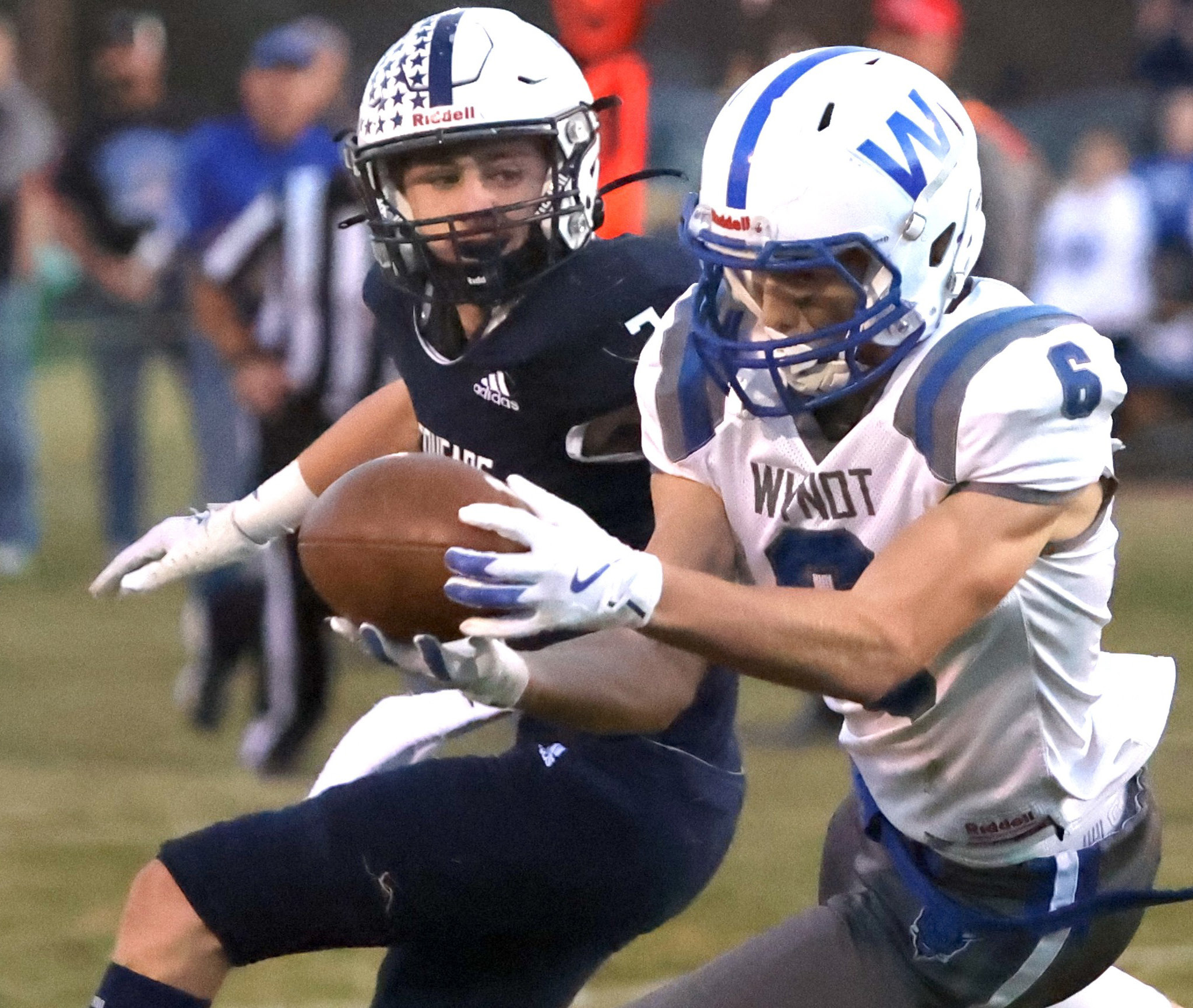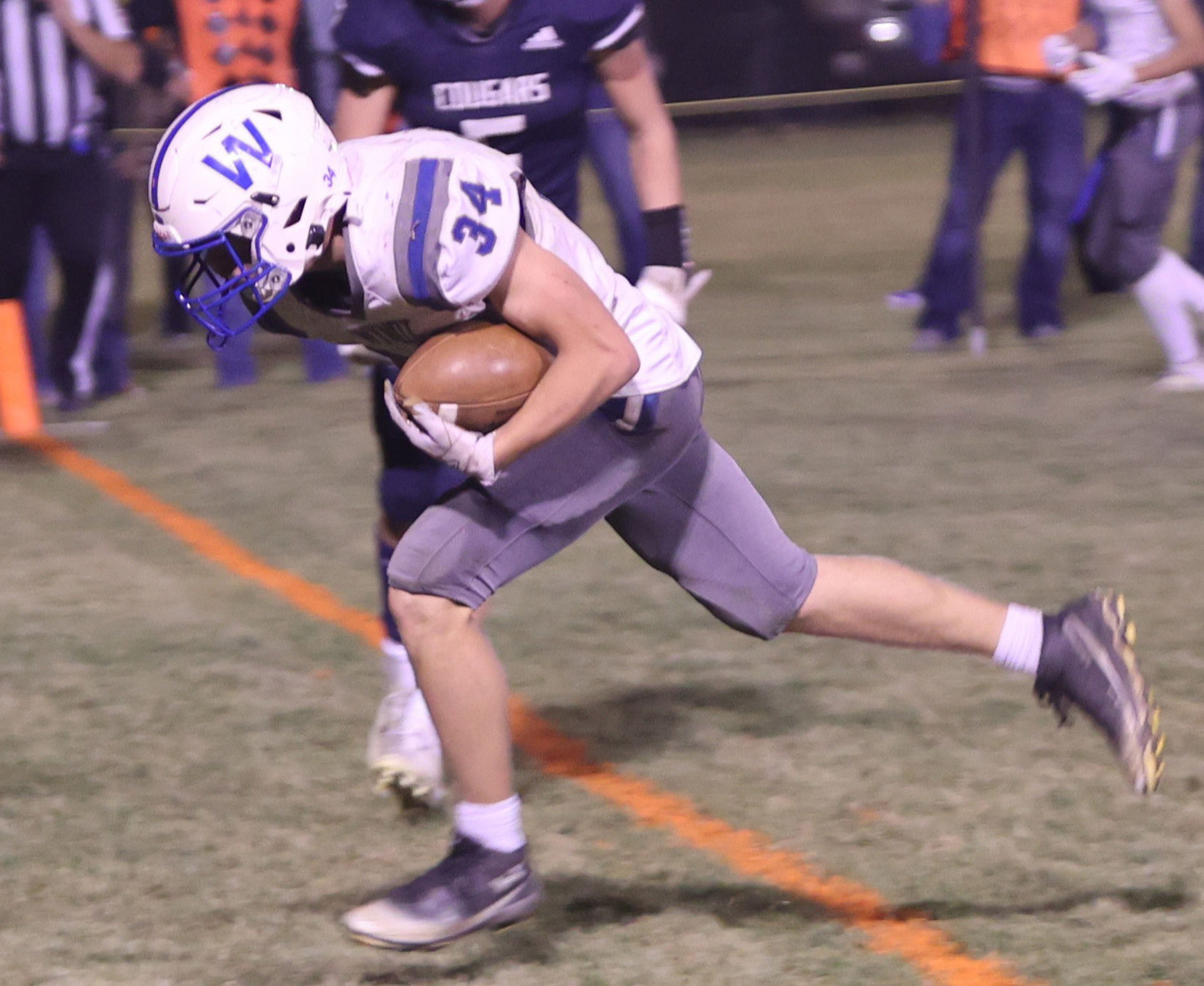 The Wynot Blue Devils will be making a return trip to Memorial Stadium for the second time in three years with a 45-28 victory over Central Valley. The Wynot football team showed their skills on the offensive and defensive side of the ball, as well as special teams to secure the victory. Kotner Koch (top) tries to get past a Central Valley defender as he makes his way downfield. (right) Braylon Hans hauls in a reception during first-half action. (bottom) Lane Heimes crosses the goal line on one of his 26 carries on the night. The Blue Devils will take on O’Neil St. Mary’s in the State Championship game Monday, Nov. 24 at 2:45 p.m.
