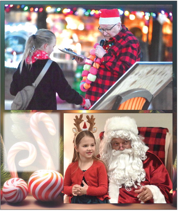 Hartington Chamber of Commerce members, assisted by several volunteers came together last Friday to put on the annual Candlelight Christmas event in downtown Hartington. New this year, was a life-sized Candyland game painted on the street for all to enjoy. (above) Father Owen Korte reads off names and spaces for the participants at the board game. (right) Hadley Klug tells Santa about her Christmas wish list. More photos can be found inside this week's Cedar County News and at the Cedar County News Facebook page.