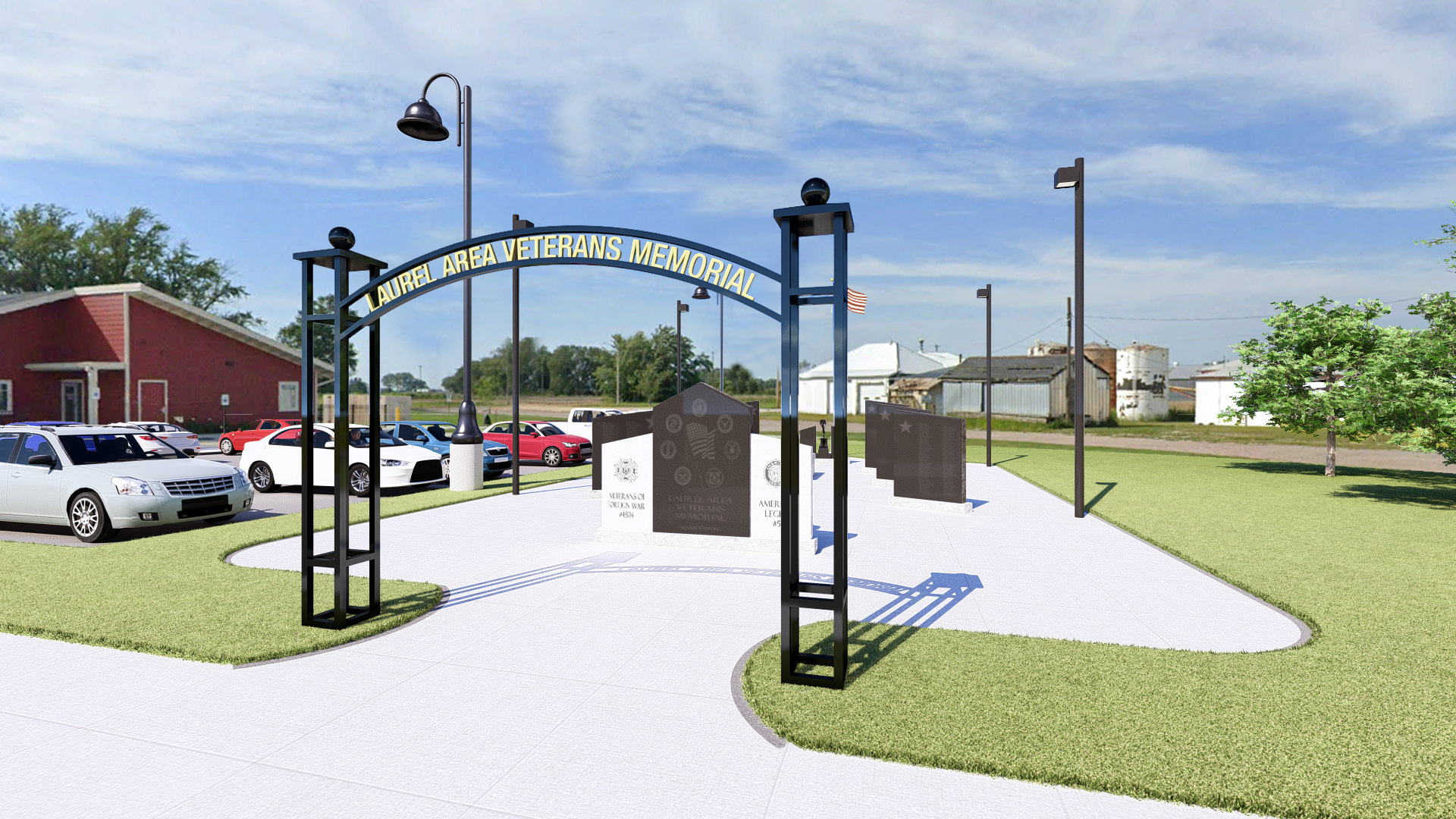 Work is underway on the Laurel Area Veterans Memorial. The structure is being built east of the Laurel Community Center on Second Street. Laurel veterans recently released artist’s drawings of the memorial. Donations are still being sought for construction, upkeep, and future additions like a stand with a reference book to find a name. Laurel American Legion Post 54 and Veterans of Foreign Wars Post 4504 members kicked off the capital campaign in 2024 for the Memorial. Individuals, organizations or businesses who wish to mail their donations or pledges are encouraged to utilize the form found in the Laurel Area Veterans Memorial brochure. Brochures are available from American Legion Post 54 and Veterans of Foreign Wars Post 4504 members, as well as: Security Bank, Galyen Boettcher Baier PC LLO, Citizens State Bank and Laurel Hometown Market. Please make checks payable to the Laurel Area Community Foundation Fund. Donations or pledges may be mailed to: Laurel Area Community Foundation Fund, P.O. Box 278, Laurel, NE 68745. Donations can also be dropped off at Security Bank.