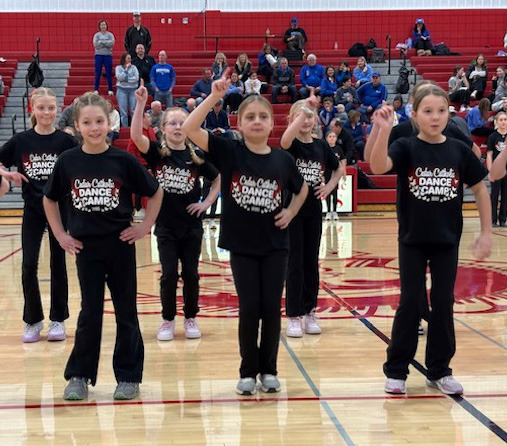 Cedar Catholic Dance Camp participants entertained fans at Saturday night’s Cedar Catholic basketball game against West Point Guardian Angels Central Catholic. JoAnn Wiebelhaus | Cedar County News