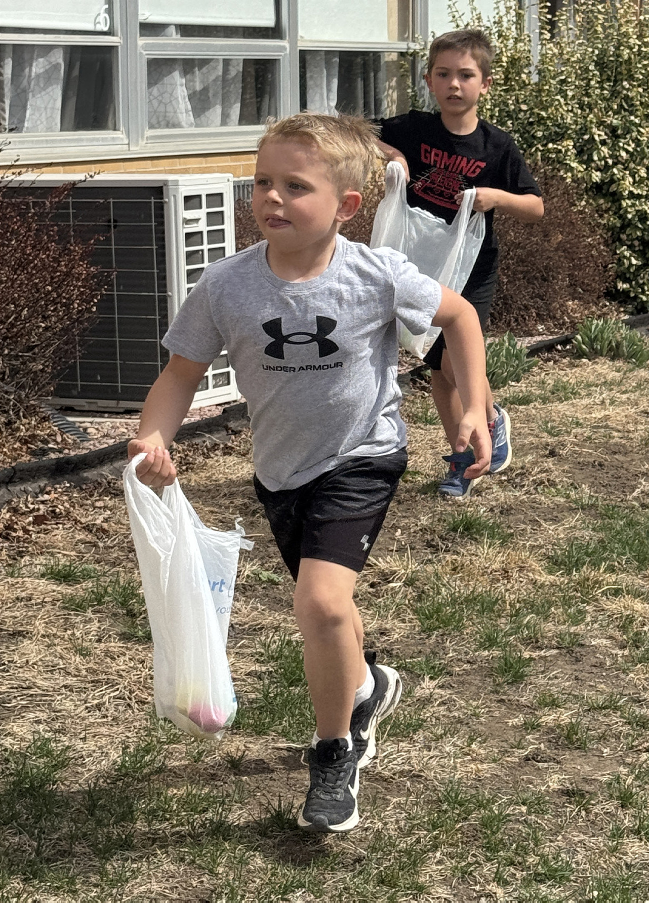 Jackie Loberg | Randolph Times Mrs. Winkelbauer’s first grade class had their Easter Egg hunt early to beat the rain that is expected in the area later this week. First grader Jeri Nielsen finds several hidden eggs, while Rowan Wessel and Wesley Gubbels race to find more of the eggs.
