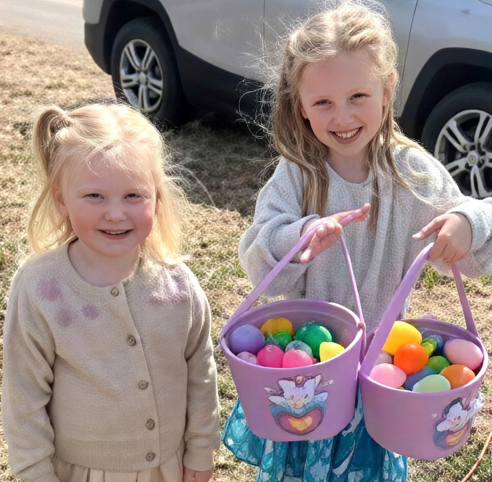 Belden’s Annual Firemen’s Pancake Breakfast was held Sunday along with an Easter Egg Hunt. (above) The Easter Bunny reaches out to high five Cole Capatch at the Egg Hunt. Emry and Drew Backer (right) are all smiles with all the eggs they collected at the Easter Egg Hunt. The event took place at the Village of Belden Park with a good turnout of kids participating. Children were divided up by age groups and then turned loose. With the combination of perfect weather, lots of eggs to hunt and having a great breakfast before the hunt, the kids were ready to hunt.