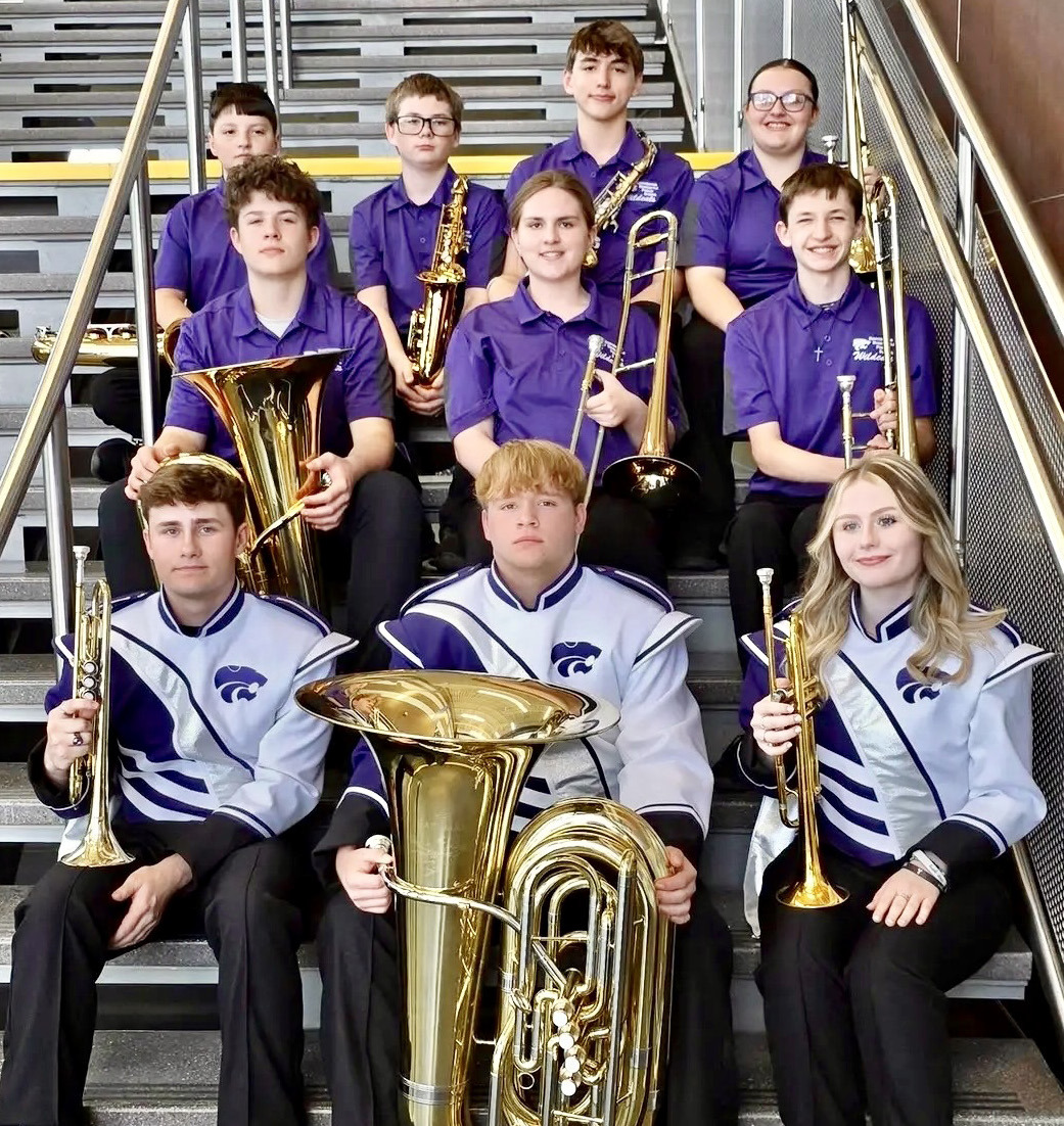Hartington-Newcastle musicians selected for Class C All-State Band are: (bottom row) Alyk Zach, Kyptin Collier, and Trynity Zach, (middle row) Merrick Folkers, Kate Wiedenfeld, and Camryn Bruning, (top row) Tate Dickens, Elliot Kneifl, Max Wiedenfeld, and Sarah Clark.