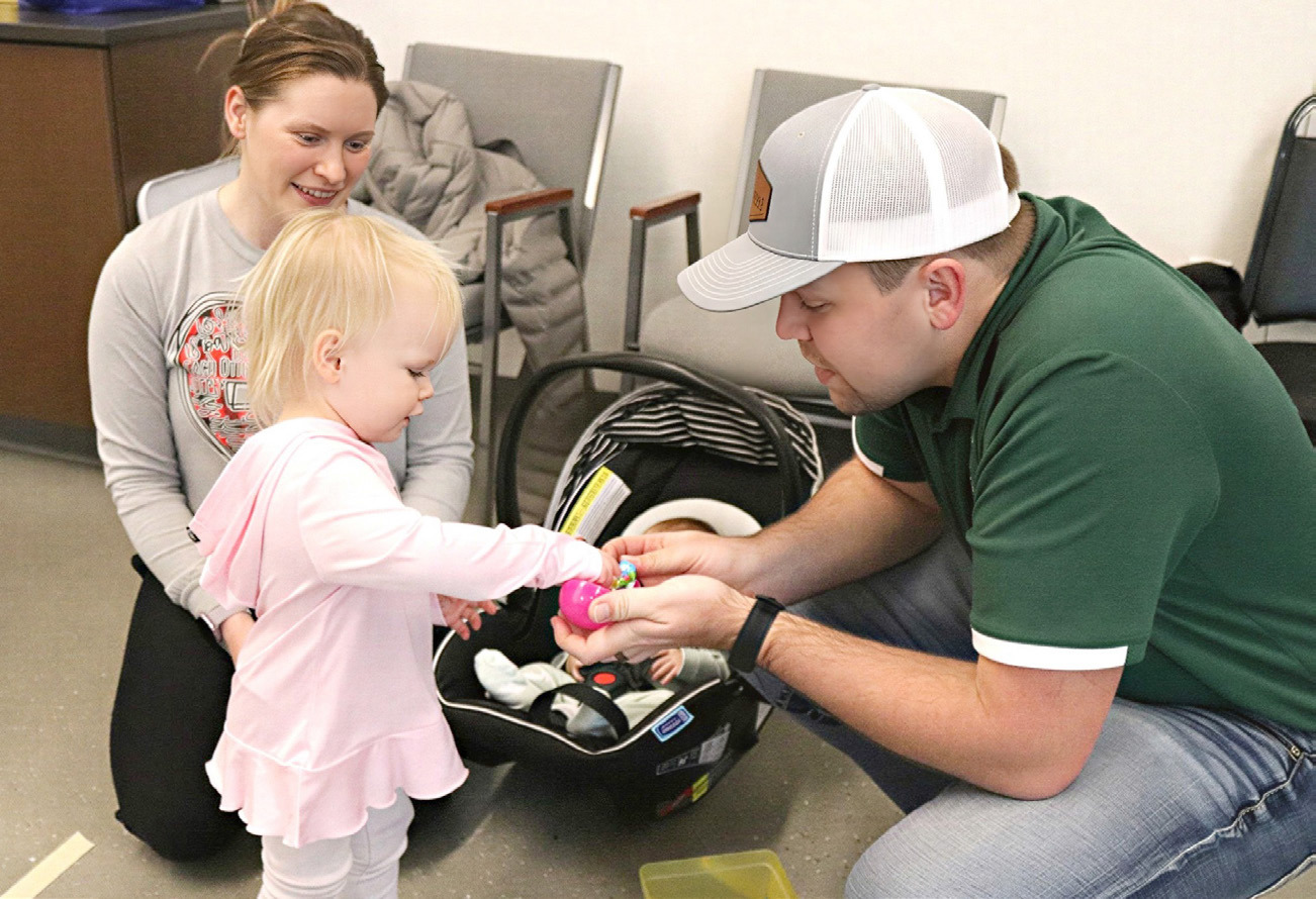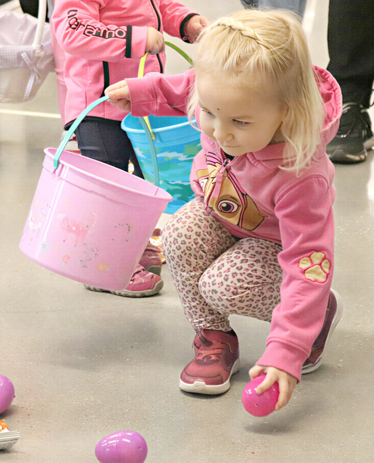 With Mother Nature being a little difficult Saturday morning, Laurel’s annual Easter Egg Hunt was moved from the City Park to the Community Center. Despite the weather, the event was well attended. The event center w as sectioned off into different areas for kids ranging from ages 0-fourth grade. Once eggs were collected and opened, those lucky enough to find a number inside one of their eggs went to the stage area to receive a prize. The event was hosted by the Laurel Chamber Community Club. (Top left) Riley and Ashley Lund try to hold back their daughters Layna and Briah as they anxiously await the start of the Easter Egg Hunt. (Above) Jenna along with baby sister Adalynn and mom and dad, Anna and Craig Gutz look over the eggs she found. (Top ri ght) Genevieve Urwiler stayed very busy picking up Easter eggs. Sandra Cross | for the Laurel Advocate