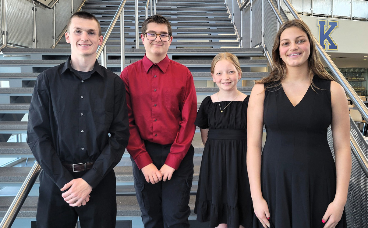 (Above) Junior High Band Foster Stone, Caden Barnes, Tenlie Christiansen and Stella Graham. (Top right) Paul Allison and Derek Nelson Wind Ensemble. (Bottom left) Jolynn Kinkaid, Alex Allison, Christian Staples, Symphonic Band Members.