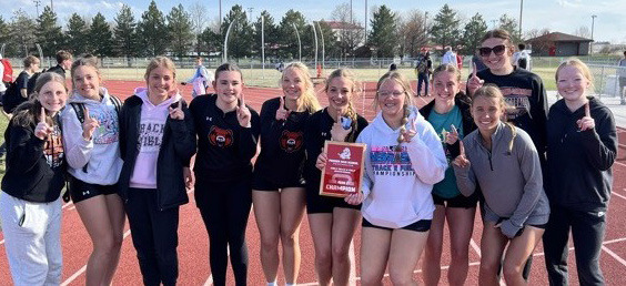 LCC Girls earn their third first place honors of the season at Pender track meet last Friday. Those pictured are: Jolynn Kinkaid, Boston Brown, Hannah Hart, Maddie Campbell, Nora Specht, Leah Gould, Aubri Kleinschmit, Justice Olson, Taelynn Settje, Abbie Brummels (back) and Ava Christiansen. Ten girls were unable to attend due to State Skills USA. Brandi Settje| for the Laurel Advocate
