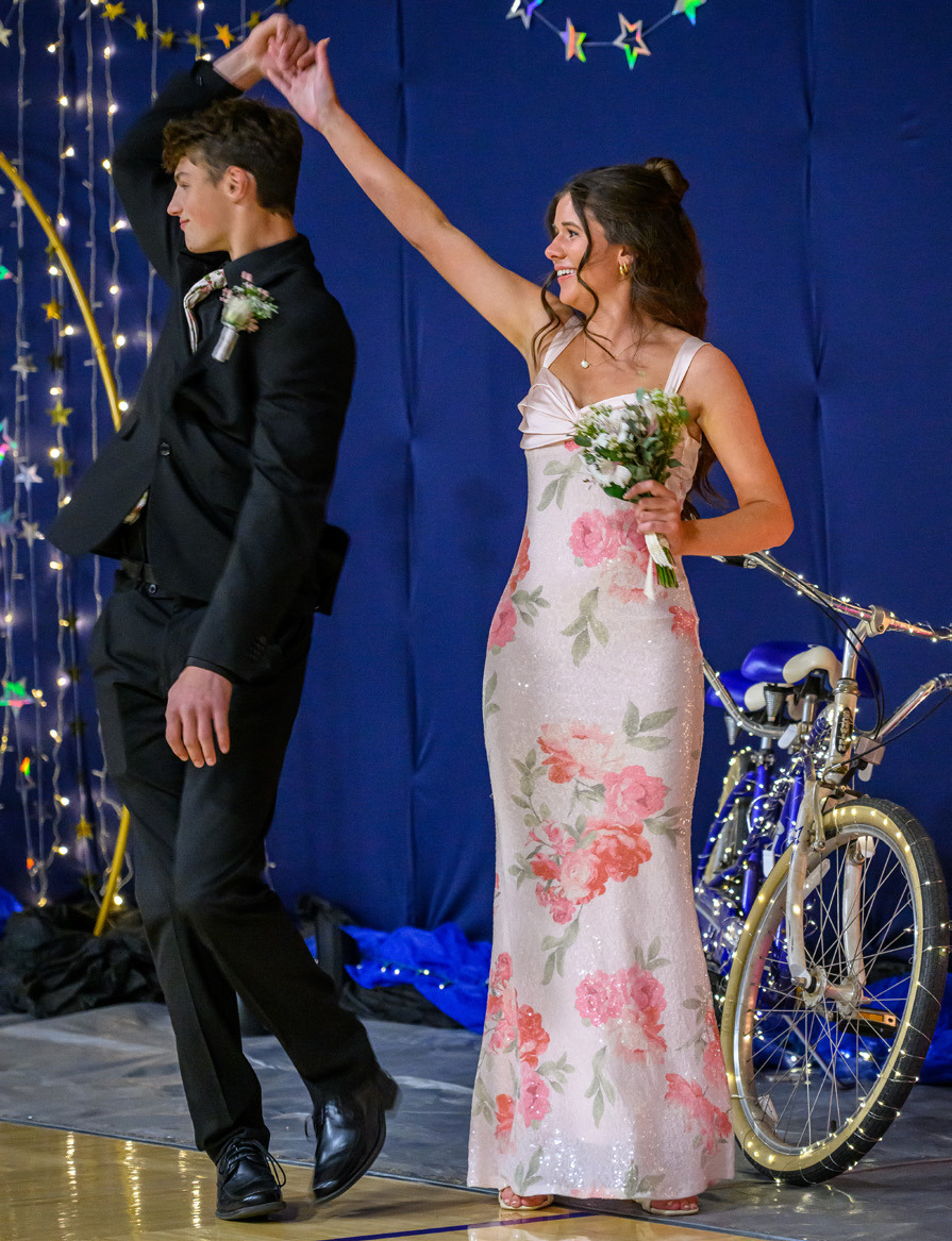 Hartington-Newcastle celebrated its annual spring prom Saturday night. (top) Kora Kneifl helps Prom Princess Katelyn Wubben with her tiara as Jade Ford and Wendy Reyes look on following the Grand March. (far left) Ty Opfer spins around while holding Breah Steffen's hand during the Grand March. (left) Colton Cavanaugh, Lane Paulsen and Scout Heimes pose for a photo following the Grant March. Besides the dance, students also enjoyed a banquet and a post-prom party. See more photos inside and at the photo gallery at www.hartington.net.