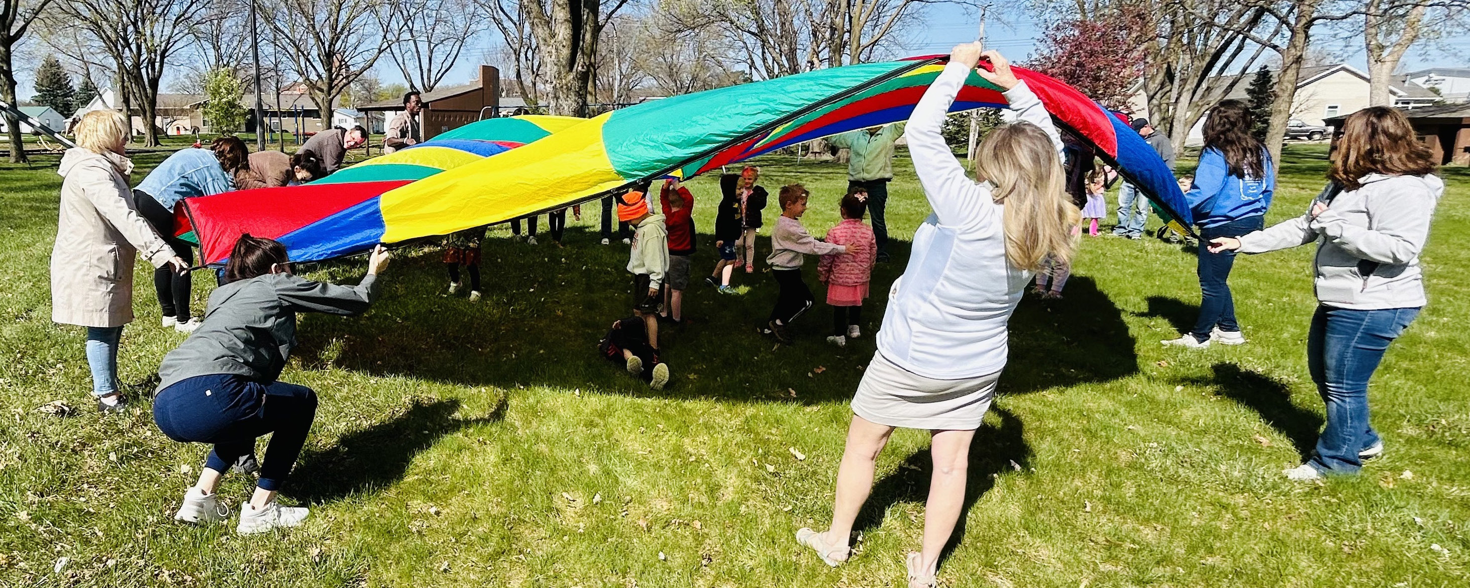 Holy Trinity Preschool students took advantage of Monday’s sunny skies to take a field trip to East Park. Parents and grandparents helped watch the kids as they played on the slides and swings and merry-goround. Oli Fischer (below) and his classmates also enjoyed their time playing with a parachute.